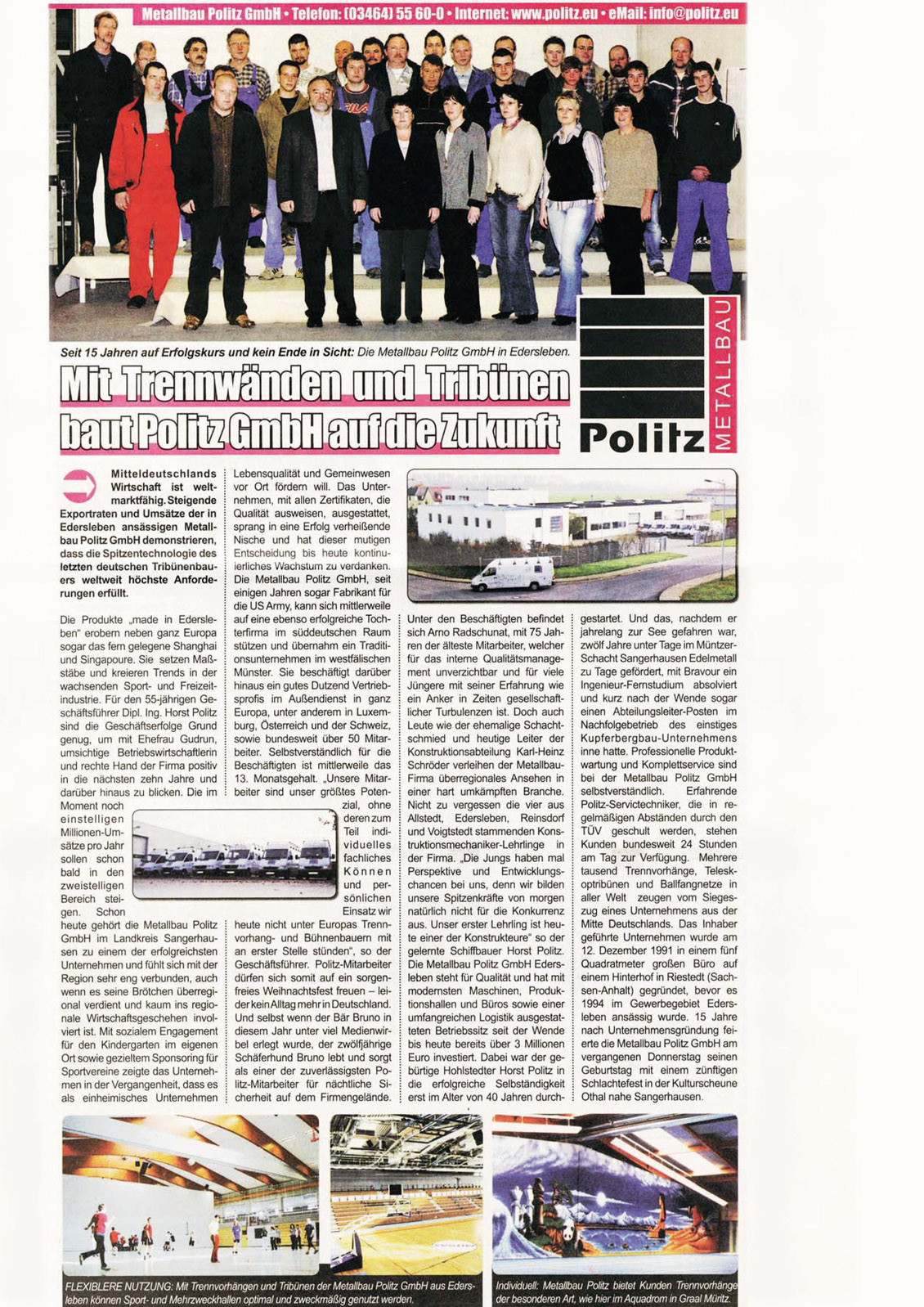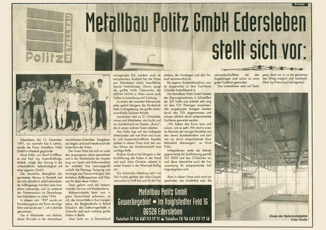 Anzeige "Metallbau Politz GmbH Edersleben stellt sich vor"