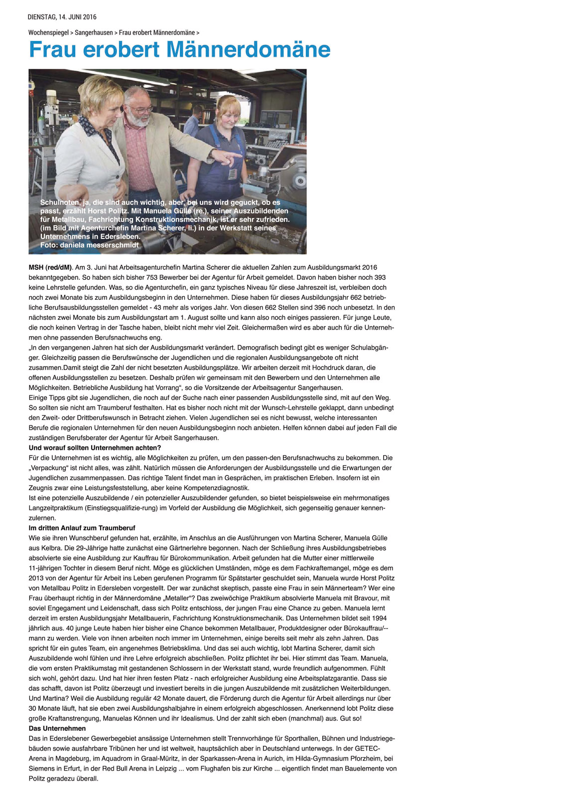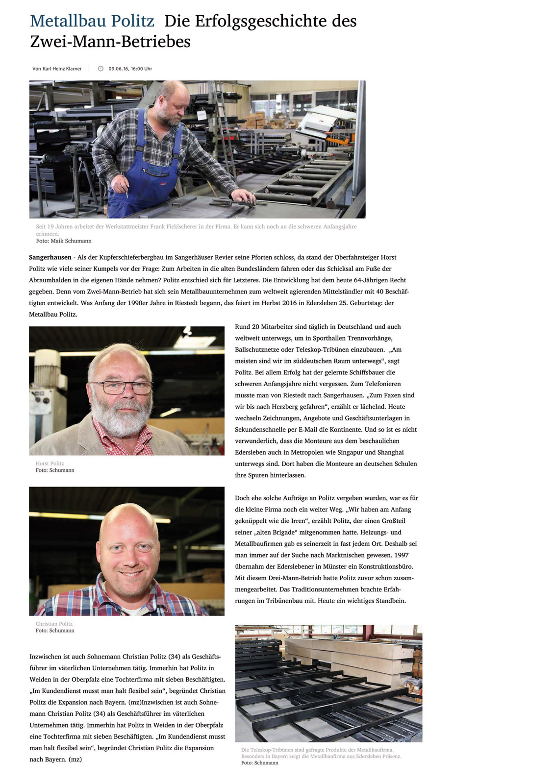 Artikel "Metallbau Politz - Die Erfolgsgeschichte des Zwei-Mann-Betriebes"